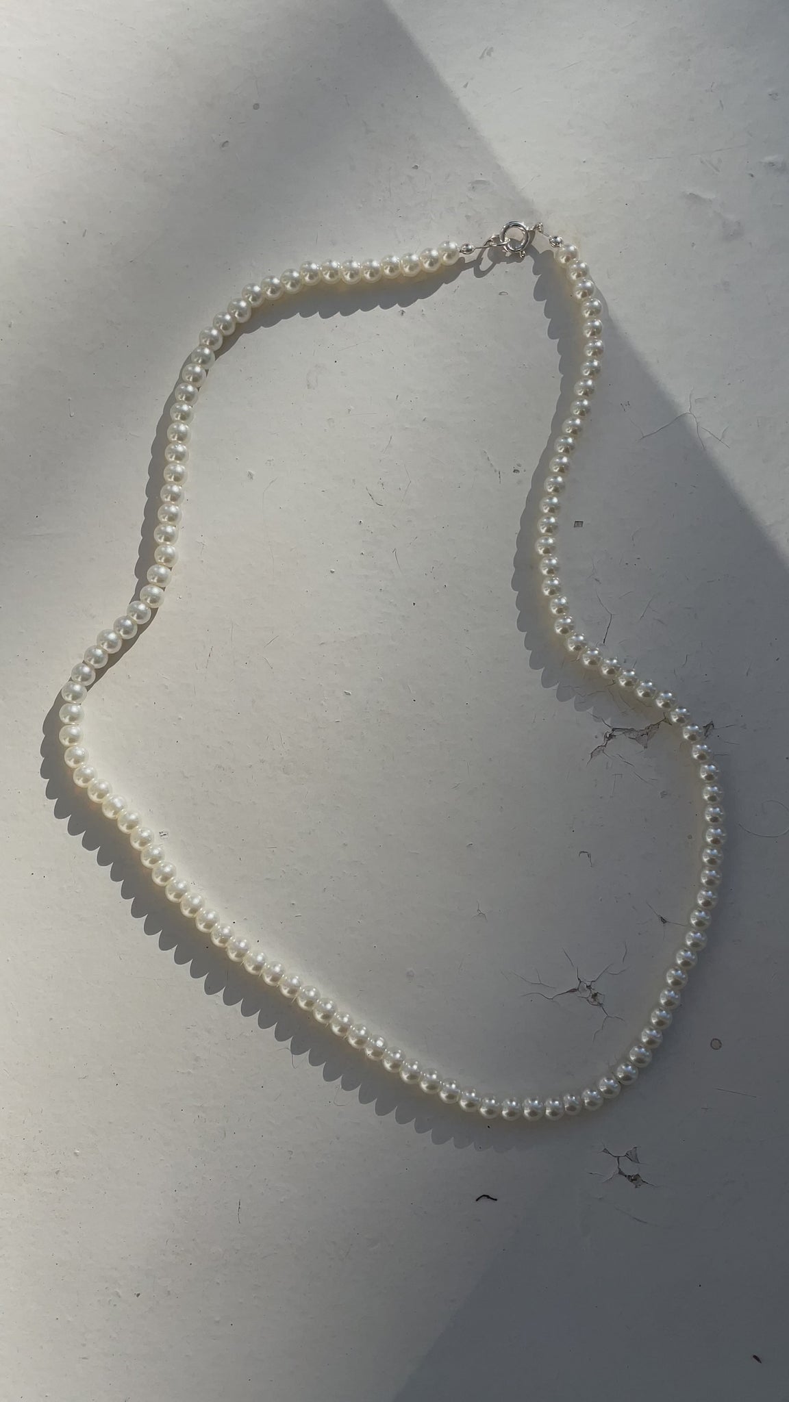 Die Kette aus Glaswachsperlen passt durch ihre schlichte Farbgebung zu jedem Anlass und ist zu jedem Outfit super zu kombinieren. Sie passt zum klassischen Businessoutfit genauso wundervoll, wie zum Basic-Shirt mit Jeans, oder abends zur Dinnerparty mit Freunden.